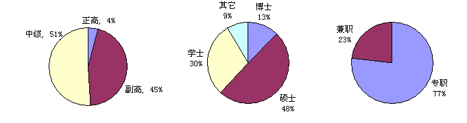 图 中心人员职称、学位、专兼职比例结构