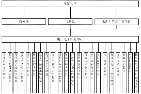 电工电子实验中心实行校院两级管理,钱同惠教 授担任中心主任,全面负责中心的实验教学与管理、教学资源的统筹调配以及实验中心的发展。中心副主任配合主任工作。在中心主任领导下,按层次化教学体系构 建专兼职结合的实验教学团队。教学团队负责制定实验课程教学大纲、申报教学改革项目以及相关实验室建设等。教学辅助人员包括负责教学管理工作教务人员、负 责实验室仪器设备及日常管理的实验室管理人员及仪器设备维修人员。