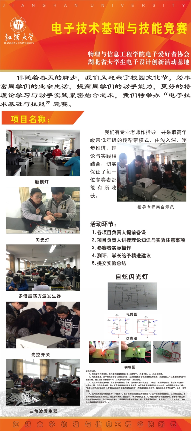 伴随着校园文化节的契机,为丰富同学们的业余生活,提高同学们的动手能力,将理论学习投入实践,我们开启了电子技术基础与技能竞赛。