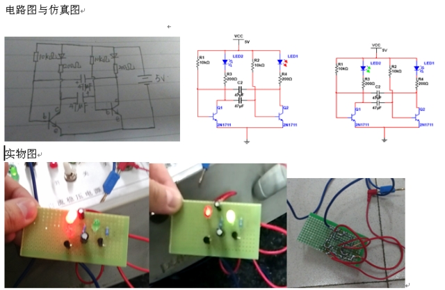 2.电路图原理。两个发光二极管可以来回闪烁,运用的就是多谐振荡器的基本原理。而且我们还可以通过更改电容和电阻的值,使三极管导通时间不同,从而更改闪烁频率,亮的时间。