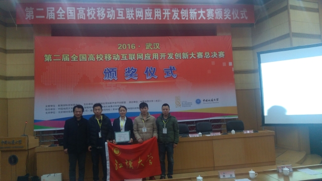 2016年1月23-25日,我校物理与信息工程学院13级学生李倩、曾庆琦和陈科科组成的江汉大学“破风”团队,在第二届全国高校移动互联网应用开发创新大赛的全国总决赛中荣获一等奖。